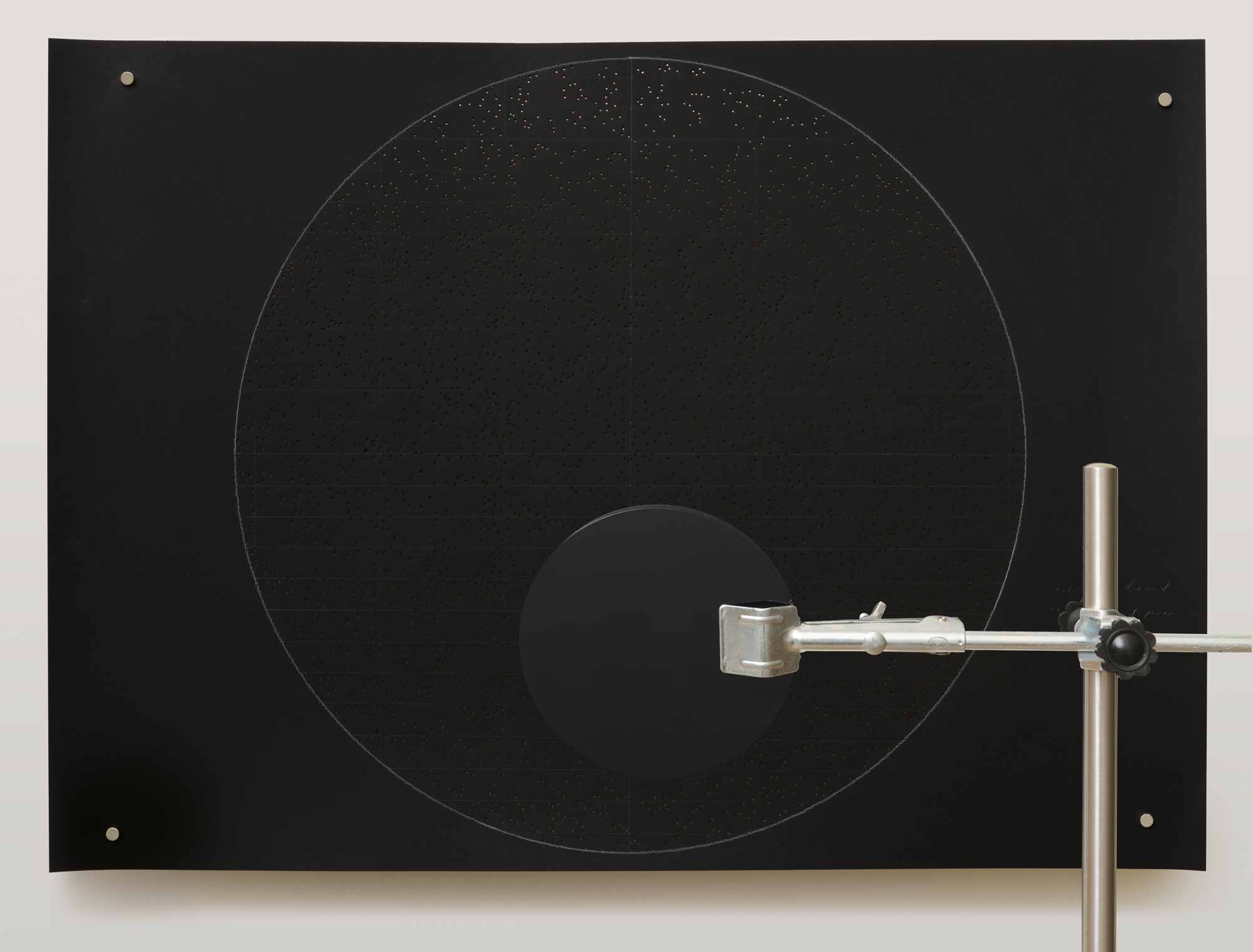 These drawings, covered in punctured openings, are based on maps of the constellations that Aztec emperor Moctezuma was reported in the Florentine Codex to have witnessed in the black crest of a crane-like bird as omens of the impending conquest. The drawings imagine obsidian mirrors to be the reflective lenses through which these constellations may have been studied. The notion of using obsidian to aid sky gazing allows Mesoamerican obsidian mirrors to assume their role as instruments of precise empirical observation.